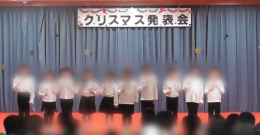 歌とダンスが大好きな子どもたち。今年は4月から朝の会で歌ってきた曲の中から選んだ2曲と、クリスマスらしい曲を選びました!衣装も合唱団のようにみんなお揃いの衣装にして、元気な歌声を披露してくれました。