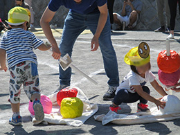 全員での「ディズニー体操」、1歳児クラスの親子競技「はらぺこあおむし」、2歳児クラスの「かけっこ」と親子競技「だんご三兄弟」、3歳児クラスのおゆうぎ「Go!Go!サーフィン」、4・5歳児クラスの演技「パラバルーン」、玉入れや障がい走、3-5歳児の対抗リレー、卒園児のお菓子ゲットレース、親子で「パプリカ」のダンスなど、盛りだくさんの内容となりました。