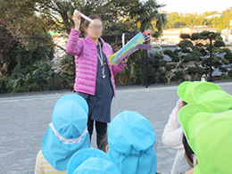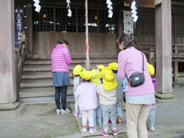 七五三のお祝い 11月15日の午後、七五三のお祝いを行いました。先生から七五三の由来についてお話を聞いた後、近くの神社へ参拝しました。 「元気に健やかに育ちますように」とお祈りをした後、保育園に帰ってくると、園長から千歳飴のプレゼントがありました。 千歳飴の飴袋は、こどもたちが工作の時間に制作したものです。各クラスで工夫して可愛いらしい飴袋が出来ました。 給食は七五三行事食で、みんなが大好きな赤飯に、花麩の入った澄まし汁、コロッケ、大根のサラダ、果物など豪華な御膳となりました。
