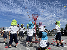今年はオリンピックに因み、トライアスロンや走り幅跳び、砲丸(お手玉)投げなどの競技も登場。さらに運動会の定番のリレーに玉入れや、体操教室で習った鉄棒、こどもの丘保育園オリジナルの競技、相撲もあり盛りだくさんの内容となりました。