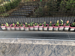 2023年3月上旬ゆり組の子どもたちがペットボトルで作った鉢に、ちゅーりっぷの球根を植えました。毎日毎日、水をあげて花が咲く日を心待ちにしていた子どもたち。4月上旬頃に芽が出て、中旬頃には色とりどりの綺麗なちゅーりっぷが咲きました!!(1)一人ひとり、鉢に名前を書きちゅーりっぷの球根を植えました。少しずつ芽が出てきました。もう少しで花が咲きそうです! |
