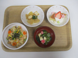 こどもの丘保育園の行事食を紹介 こどもの丘保育園では、毎日の食事を大切に考え、献立づくりをしています。旬の食材を使用し、色々な食材を通して食の体験ができるようにしています。今回はこどもの丘保育園の行事食をご紹介します。 1月「お正月」 給食:ごはん、すまし汁、松風焼き、紅白なます、みかん /おやつ:おしるこ 2月「節分」給食:鬼さんキーマカレー、コンソメスープ、大根とツナのサラダ、りんご /おやつ:恵方ロールサンド 3月「ひなまつり」給食:ちらし寿司、菜の花のすまし汁、大根と厚揚げの煮物、りんご /おやつ:ひなあられケーキ