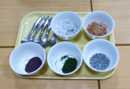 3種類の砂糖(グラニュー糖、素精糖、氷砂糖)を使って梅ジュース作りを実施しました。爪楊枝で梅のヘタを取って穴をあけ、梅と砂糖をビンに詰める作業をしてもらいました。完成までの間、給食室に展示していると「梅ジュースはいつ飲める?」と完成を待ち遠しくしている子どもたちの姿が見られました。